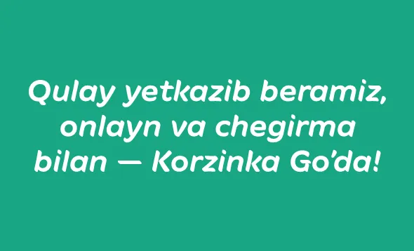 Korzinka.uz supermarketlar tarmog'i xaridingizni haqiqiy zavqga aylantirishga intiladi, shuning uchun agar siz do'konlarga borishni yoqtirmasangiz, bizda ajoyib yechim bor - oziq-ovqat mahsulotlarini uyga yetkazib berish. Siz etkazib berish va to'lov shartlarini, shuningdek, tovarlar katalogini tekshirishingiz mumkin, havola orqali. Tovarlar katalogi va assortimenti supermarketlar javonlarida taqdim etilgan tanlov bilan bir xil.